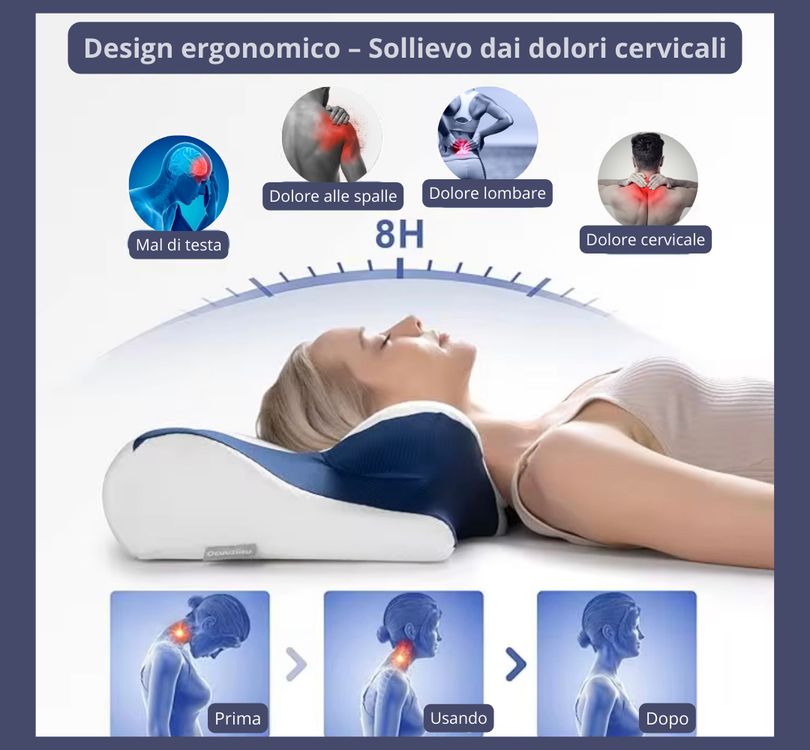 I fisioterapisti raccomandano il nostro cuscino ergonomico per alleviare i dolori cervicali, migliorare la postura durante il sonno e garantire un riposo profondo e rigenerante.
